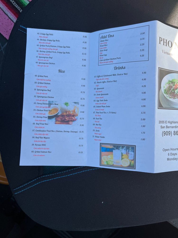 Welcome to Pho Ngon, a delightful Vietnamese eatery nestled in San Bernardino. Here, vibrant flavors meet traditional cuisine, creating an inviting atmosphere that feels like a home away from home. The menu showcases a fantastic variety of dishes, from Traditional Spring Rolls at $5.50 to hearty Flat Rice Noodles featuring both chicken and beef for $11.95. Vegetarians can savor the delicious Tofu Rolls which, despite being simple, deliver an extraordinary taste experience.